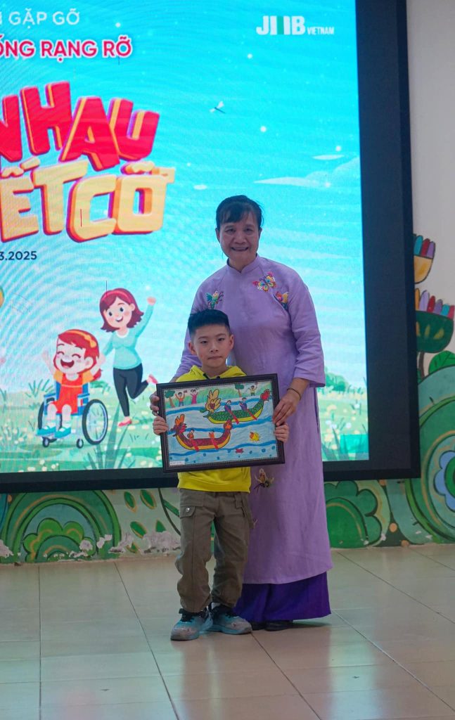 Trong chương trình, các em cùng phụ huynh đã đi lễ chùa Phật Tích, tham gia nhiều hoạt động như yoga cười, vẽ tranh, sumo cười và chia sẻ những câu chuyện ý nghĩa. Đặc biệt, CLB Hòa nhập đã dành tặng Trung tâm một bức tranh lưu niệm do em Gia Hạnh vẽ, thể hiện tình yêu thương và sự sẻ chia dành cho các bạn nhỏ tại đây.