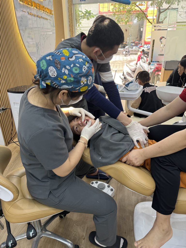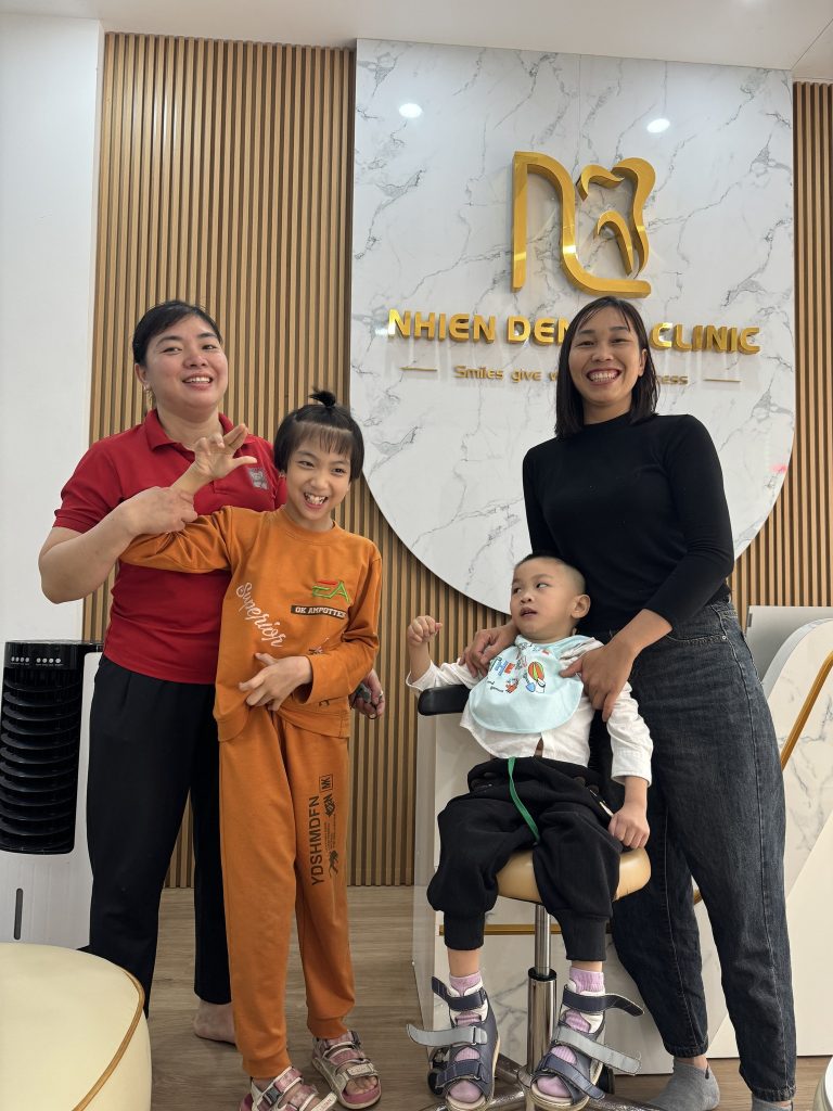 Đội ngũ bác sĩ tại Nhiên Dental Clinic tận tâm thực hiện thăm khám răng miệng cho các em