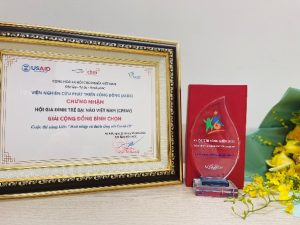 Tham gia Lễ kỉ niệm, chị Đinh Thị Lan Anh – Chủ tịch Hội đại diện cho CPFAV được vinh danh và nhận giải thưởng cuộc thi Sáng kiến “Hội nhập và thích ứng với Covid-19” do Viện ACDC tổ chức.