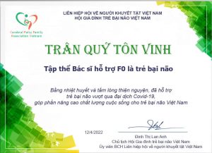 Bằng tất cả sự biết ơn, Hội Gia đình trẻ bại não Việt Nam CPFAV xin được bày tỏ cảm kích trước tấm lòng thiện nguyện và nhiệt huyết của tập thể các bác sĩ, đã hỗ trợ cộng đồng trẻ bại não Việt Nam chiến thắng đại dịch Covid-19.