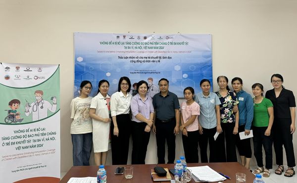 Thảo luận nhóm trong khuôn khổ đề tài nghiên cứu “Không để ai bị bỏ lại: Tăng cường độ bao phủ tiêm chủng ở trẻ em khuyết tật tại Ba Vì, Hà Nội, Việt Nam 2024”