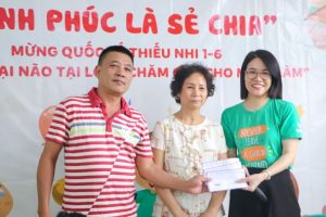 Đại diện Tổ dân phố số 5 phường Ngọc Khánh – Ba Đình trao quà cho trẻ bại não nhân dịp Tết Thiếu Nhi 1/6