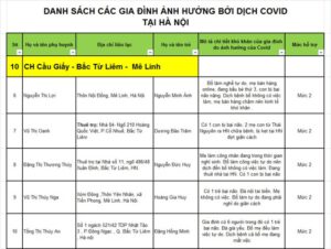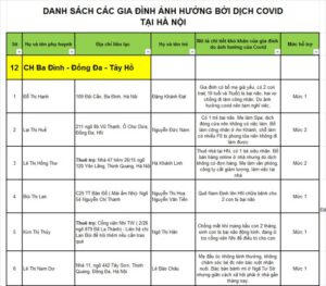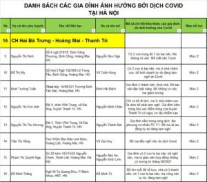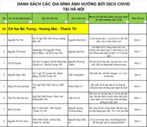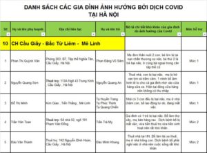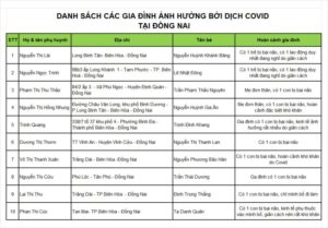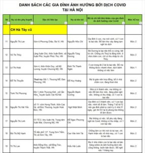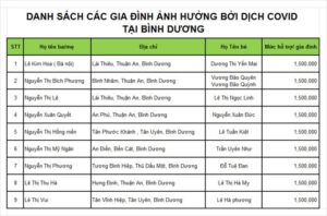 Danh sách các gia đình nhận được hỗ trợ