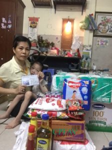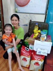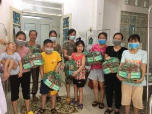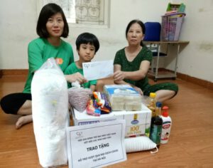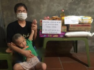 Với sự hỗ trợ của MTQ cũng là mẹ siêu nhân Chinh Nguyễn cùng với quỹ Hội, đại diện Chi hội Thanh Xuân – Hà Đông – Nam Từ Liêm (Hà Nội) đã đến trao quà hỗ trợ cho 9 gia đình đang mắc kẹt tại Bệnh viện Phục hồi chức năng Hà Nội gồm sữa, mì gói phần nào giúp các gia đình vượt qua những ngày Hà Nội giãn cách này.