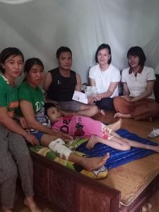 Thay mặt CPFAV, chi hội Sóc Sơn- Đông Anh đã gửi số tiền hỗ trợ đột xuất 1.000.000 đồng tới gia đình em. Đồng thời, khi nhận được thông tin cần hỗ trợ, các tấm lòng vàng trong nhóm Thiện nguyện Lan Dương và những người bạn cũng đã gửi số tiền 5.600.000 đồng tới gia đình.