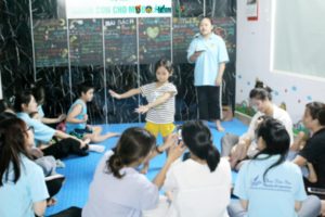 Các bạn sinh viên Khoa Văn học – trường KHXH&NV – ĐH Quốc Gia Hà Nội vui chơi cùng các bé