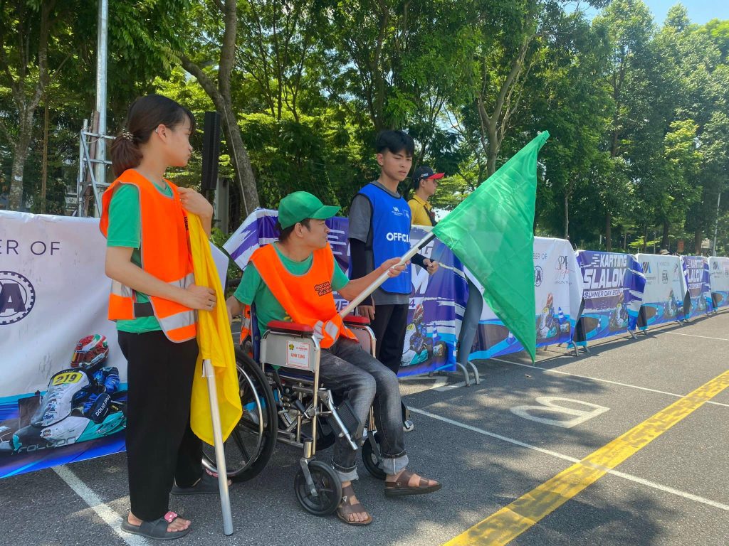 Lần đầu tiên 4 bạn người CP (bại não) đã được tham gia vào sự kiện trải nghiệm bộ môn Karting Slamon tại Việt Nam. Dù chỉ là các phần việc đơn giản: quan sát, phất cờ báo hiệu cho Ban Tổ chức khi các tay đua đi sai đường, làm đổ trụ,… và nhận việc trong một thời gian rất ngắn, nhưng các bạn đã hoàn thành tốt nhiệm vụ. Không chỉ là phần việc có thêm thu nhập, đây cũng là dịp để các bạn trải nghiệm những hoạt động mới mẻ và tăng cơ hội hoà nhập xã hội.