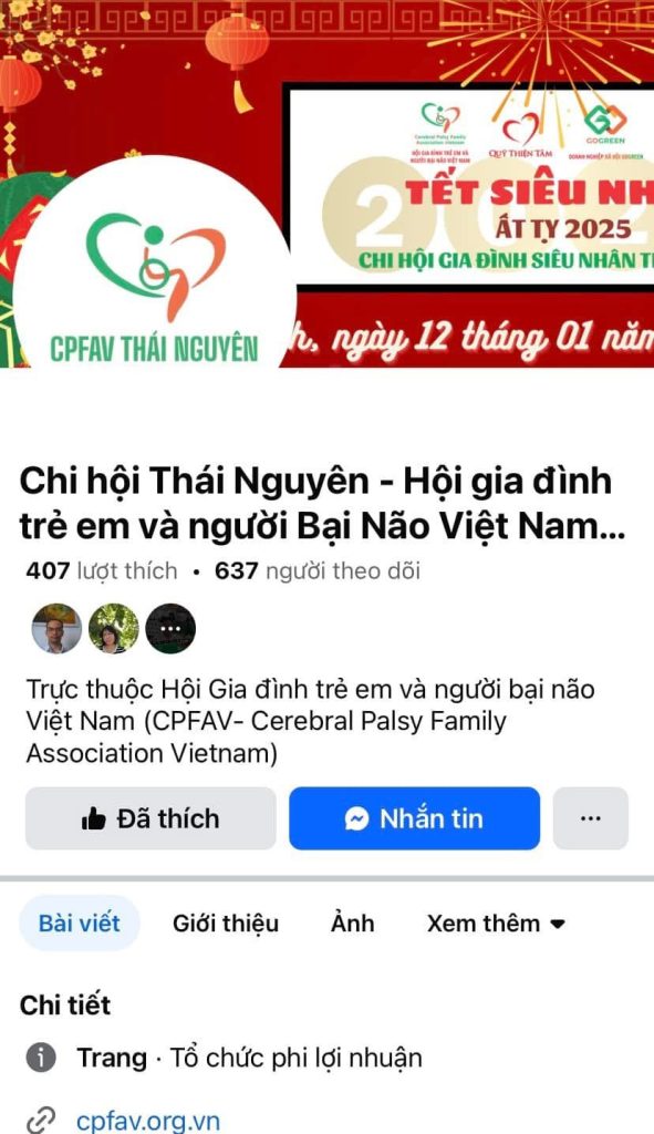 Một trong những thành tựu nổi bật của Hội Gia đình trẻ em và người bại não Việt Nam – CPFAV trong năm 2024 là truyền thông nâng cao nhận thức của xã hội về chứng bại não (CP) đã phát triển mạnh mẽ cả trong và ngoài nước với hệ thống Fanpage hoạt động sôi nổi, góp phần đưa hình ảnh của cộng đồng đến gần hơn với xã hội.