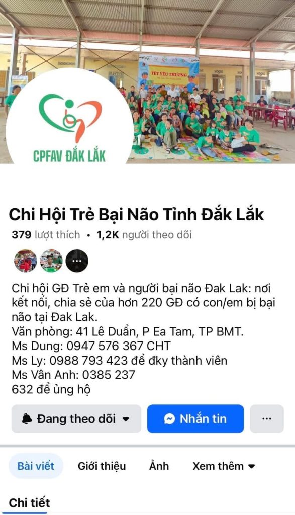 - Giải Bạc Fanpage Truyền thông xuất sắc: Chi Hội Trẻ Bại Não Tỉnh Đắk Lắk