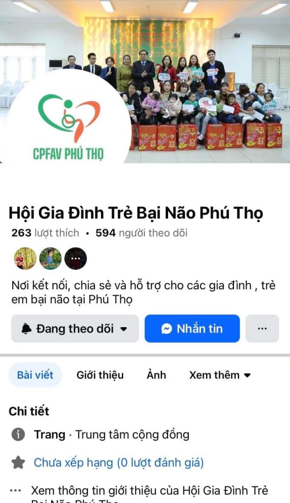 - Giải Vàng Fanpage Truyền thông xuất sắc: Chi hội Thái Nguyên – Hội gia đình trẻ em và người Bại Não Việt Nam – CPFAV