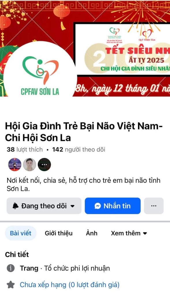 - Giải thưởng Fanpage triển vọng: Hội Gia Đình Trẻ Bại Não Việt Nam- Chi Hội Sơn La