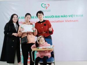 Tại chương trình, chị Bạch Thị Hoàn – Chi hội trưởng Hội Gia đình trẻ bại não tỉnh Hòa Bình đã vinh dự đón nhận Bằng khen của Hội Bảo trợ người khuyết tật và trẻ mồ côi Việt Nam cho những đóng góp của chị với cộng đồng trẻ em và người bại não tại tỉnh nhà.