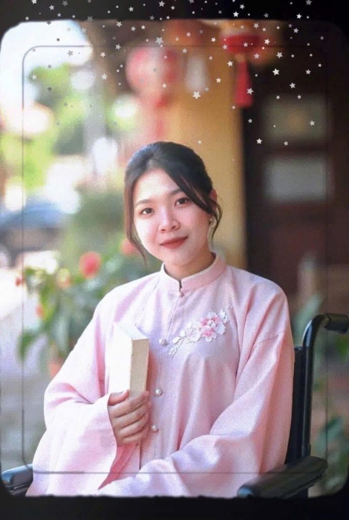 Em Nguyễn Nguyễn Quảng Diệu Anh nhận xe lăn và quà từ Câu lạc bộ Chuo University Rotaract