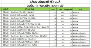Bảng kết quả cuộc thi Gia đình xanh lá