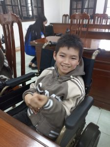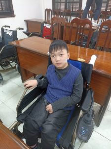 Em Trần Văn Tú (Thái Nguyên) nhận xe lăn điện từ Công ty Samsung Việt Nam