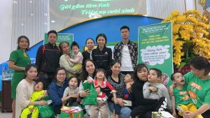 Chị Đinh Thị Lan Anh – Chủ tịch CPFAV thăm và tặng quà cho 05 trẻ đầu tiên được phẫu thuật trong chương trình