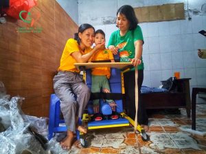 Với mong muốn được chia sẻ cùng gia đình, hỗ trợ các con tập luyện, CPFAV phối hợp với Quỹ Bảo trợ trẻ em bại não GoGreen4CP trao tặng khung tập đứng thẳng loại thấp có ụ ngồi – dụng cụ thứ 359 của chương trình cho Khánh Linh và Ngọc Linh. Hi vọng dụng cụ mới sẽ giúp các con đứng dậy để gần hơn với mục tiêu cải thiện sức khoẻ, hòa nhập cộng đồng.