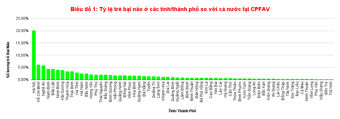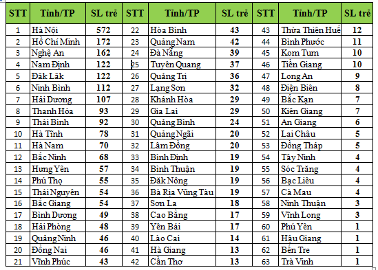 1.Số lượng trẻ bại não ở các tỉnh/thành phố