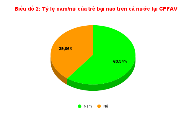 Theo số liệu thống kê đến ngày 04/10/2021 của Hội Gia đình trẻ bại não Việt Nam, trong 2.857 trẻ bại não độ tuổi 0-16 tuổi có 1724 trẻ giới tính Nam và 1133 trẻ giới tính nữ. Tỷ lệ trẻ bại não là nam nhiều hơn nữ.