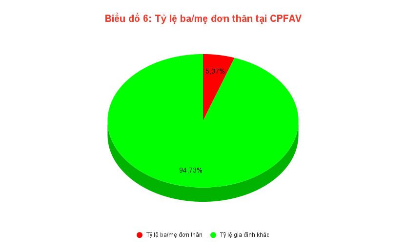 Trong cộng đồng trẻ bại não Việt Nam, có 146 gia đình có bố/mẹ hiện đang một mình nuôi dạy trẻ bại não, trong đó chủ yếu là mẹ đơn thân, chiếm 5,37% các gia đình trong Hội. Bố mẹ đơn thân vừa tự mình xoay sở kinh tế, vừa tìm cách điều trị cho con nên rất vất vả.