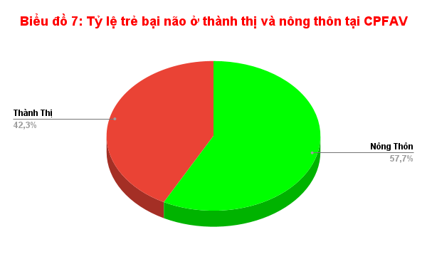 • Tỷ lệ trẻ bại não ở nông thôn/thành thị