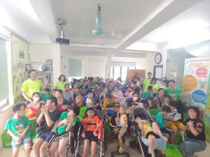 Chị Phạm Thị Thủy Tiên và nhóm bạn tặng quà cho trẻ bại não tại Mái ấm Gia đình Siêu nhân