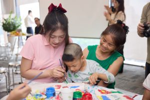 Các thí sinh Top 25 Hoa hậu Việt Nam trong hoạt động vẽ tranh cùng trẻ em bại não