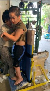 Trong khuôn khổ chương trình, 11 dụng cụ bao gồm xe lăn và dụng cụ hỗ trợ phục hồi chức năng đã được trao cho các trẻ bại não bị hư hỏng, thất lạc dụng cụ do mưa lũ.