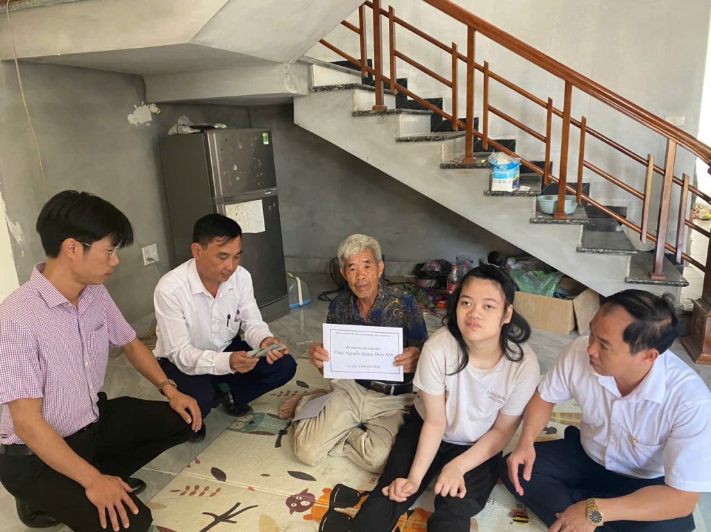 Đại diện Công ty Công ty Cổ phần Đầu Tư và Thương mại Hóa dầu Việt Nam trao hỗ trợ cho em Lương Linh Nhi (Yên Bái)