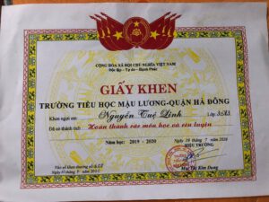 Em Nguyễn Tuệ Linh, Lớp 4, trường Tiểu học Mậu Lương, Kiến Hưng, Hà Đông, Hà Nội.