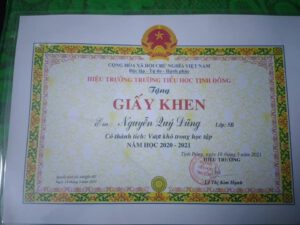 Mùa học bổng năm 2020 – 2021 ghi nhận có 17 em đạt thành tích học tập tốt, 25 em có cố gắng trong học tập và 14 em vào lớp 1 học hòa nhập. Có 2 em có thành tích xuất sắc là các em: