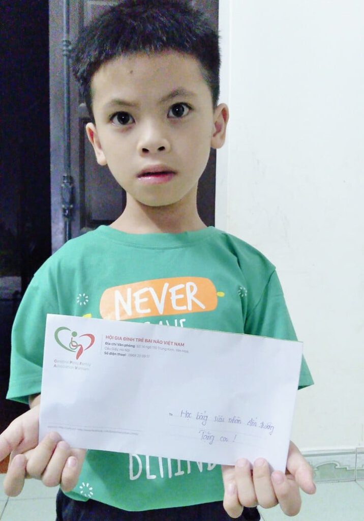 Để động viên tinh thần hiếu học, trước khi bắt đầu vào năm học mới, Hội Gia đình trẻ bại não Việt Nam (CPFAV) đã thực hiện trao 55 suất học bổng cho 55 em nhỏ hiện đang học hòa nhập trên khắp cả nước. Con số này đã tăng so với 2 năm trước (năm đầu 20 em, năm thứ 2 có 32 em). Điều đó chứng tỏ chương trình Học bổng đã đến được với các gia đình sâu rộng hơn và các cha mẹ trong Hội cũng đã mạnh dạn và quan tâm nhiều hơn đến vấn đề học hòa nhập của con em.