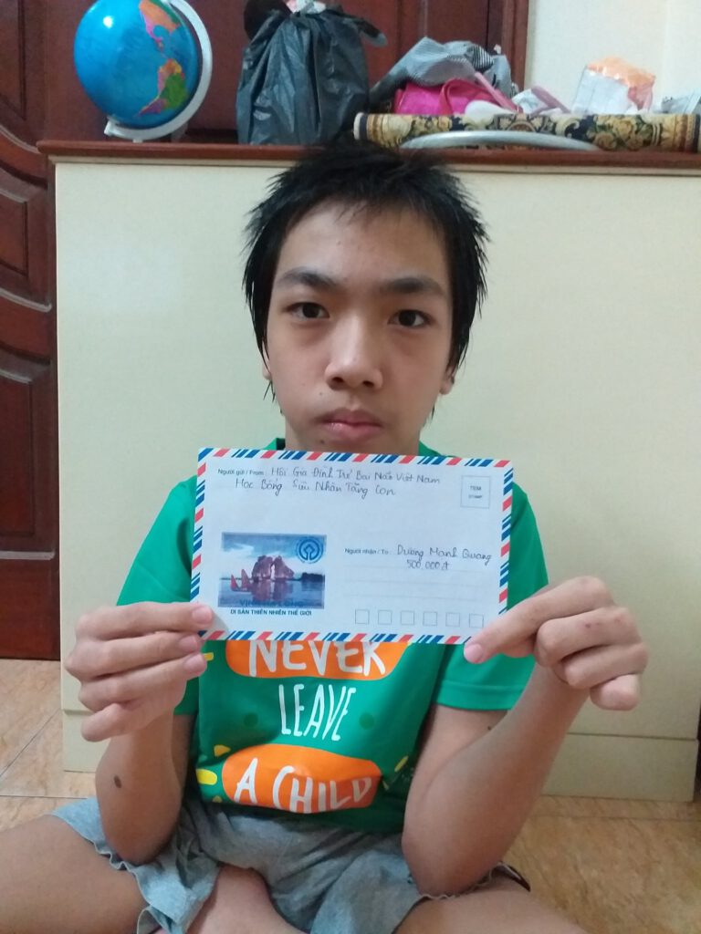 Mong các con hãy hiểu rằng, các con đang là những mầm xanh ưu tú nhất trong cộng đồng của chúng ta. Đến được trường học đã là một sự may mắn và hạnh phúc vô bờ bến, so với hàng ngàn bạn nhỏ khác còn đang nằm một chỗ, so với hàng ngàn gia đình khác chỉ cần con không khóc, con ngủ ngon đã là mơ ước lớn lao rồi. Mong các con sẽ luôn là cảm hứng và là niềm tự hào của Thế giới Màu Xanh Lá. Các con hãy nỗ lực để minh chứng cho mọi người thấy rằng: có rất nhiều trẻ bại não (CP) “tàn nhưng không phế”! Các con đã, đang và sẽ trở thành những con người có ích cho đất nước. Mong các con sẽ làm nhiều người trong xã hội thay đổi cái nhìn về trẻ bại não.