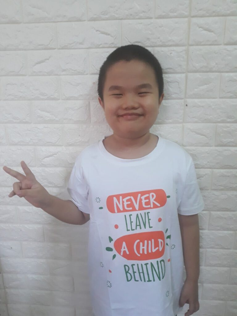 Em rất thích được đến trường, vì em đã cao 1m30 và nặng 26kg nên mẹ đưa Em đến trường khá vất vả. Em học tốt môn toán và rất yêu thích Anh văn. Dù ngồi trong lớp học trên một chiếc ghế thật đặc biệt, nhưng em là một cậu bé luôn vui vẻ, yêu đời, được bạn bè yêu quý và giúp đỡ em nhiều.