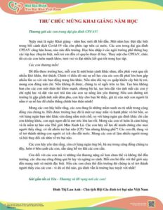 THƯ CHÚC MỪNG KHAI GIẢNG NĂM HỌC 2021 – 2022