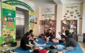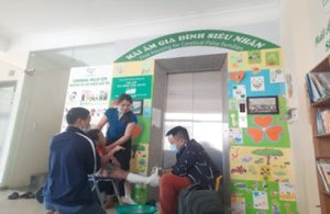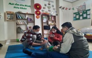 Chị Đinh Thị Lan Anh – Chủ tịch Hội Gia đình trẻ bại não Việt Nam và Văn phòng Hội đến thăm và động viên các gia đình