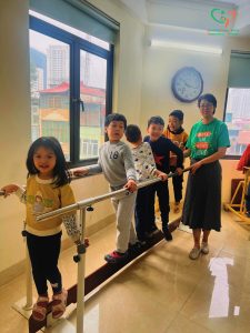 Cô Nguyễn Thủy – KTV khoa PHCN Nhi Thanh Hoá hướng dẫn các gia dình