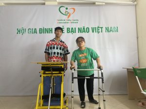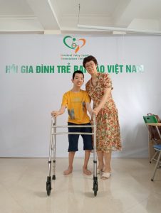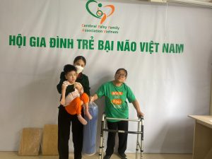 Em Cao Văn Anh Tài, con mẹ Bùi Thị Mỹ Hạnh ở tổ dân phố 1- phường Trung Sơn Trầm – Thị xã Sơn Tây – Hà Nội. Em bị bại não thể có cứng, liệt nửa người bên trái và não úng thủy, đã phẫu thuật mổ 4 lần. Với mong muốn được chia sẻ cùng gia đình, thực hiện mơ ước được ra ngoài nhìn ngắm xung quanh của Tài, CPFAV phối hợp với Quỹ Bảo trợ trẻ em bại não GoGreen4CP trao tặng khung tập đi có đại nâng đỡ – dụng cụ thứ 360 của chương trình cho em.