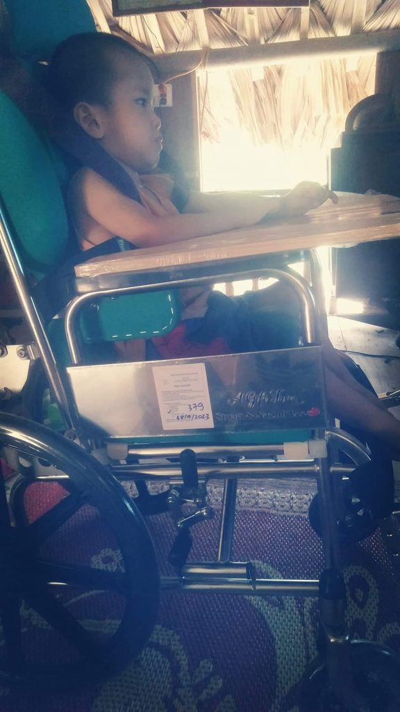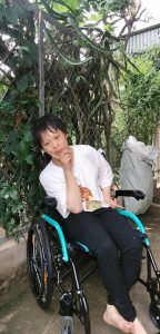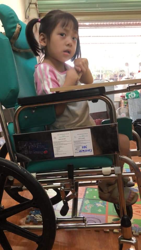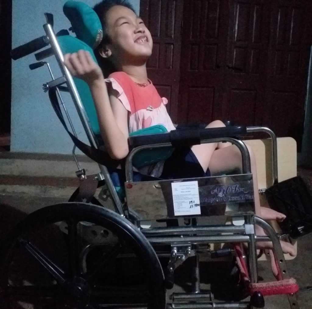 Em Trần Thị Nhâm ở Quỳ Hợp, Nghệ An mắc chứng bại não, bị co cứng cơ, mọi sinh hoạt đều phụ thuộc vào người thân. Trong khuôn khổ của dự án “Thoát khỏi sàn nhà 2023”, em nhận được dụng cụ số 429 – Xe lăn Lucas, hỗ trợ Nhâm trong sinh hoạt hàng ngày.