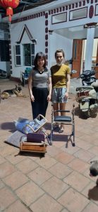 Trao tặng khung tập đứng thẳng loại thấp có ụ ngồi cho hai em Dương Ngọc Linh và Dương Khánh Linh (2018) con mẹ Mai Thị Tươi, quê ở Hưng Yên, hiện đang thuê trọ tại Ngõ số 200 – Vĩnh Hưng – Hoàng Mai.