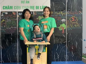 Trao ghế tập ngồi đặc biệt cho trẻ khuyết tật cho dự án ” Chăm con cho mẹ đi làm” tại Số 1074 La Thành, Ngọc Khánh, Ba Đình, Hà Nội. Đây là một lớp học thiện nguyện đặc biệt, các trẻ tham gia đều bị bại não khá nặng. Lớp học thuộc dự án “ Chăm con cho mẹ đi làm” là nơi gửi trẻ để cha mẹ có thể ra ngoài làm việc hoặc làm những gì bản thân yêu thích.