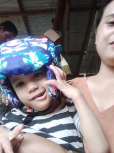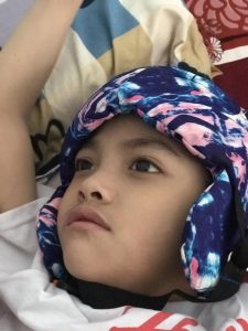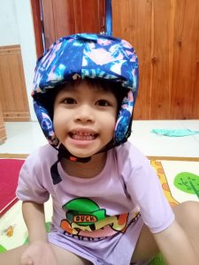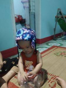 Trao dụng cụ TKSN 409 – Nón bảo vệ đầu cho trẻ bại não cho em Ưn (Gia Lai)