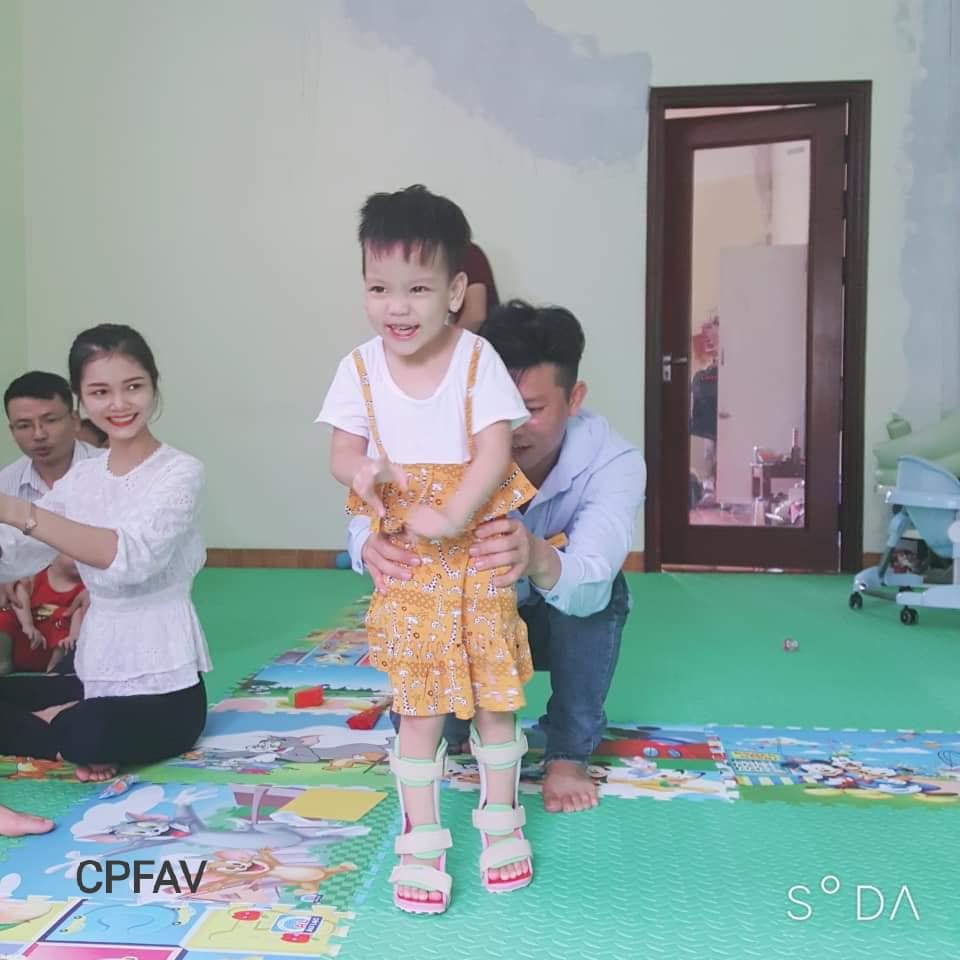Trong năm 2018 – 2019, dự án đã hỗ trợ đo đóng và trao tặng 57 đôi giày cho trẻ bại não để hỗ trợ các em tập đứng, đi và giảm các biến chứng của co cơ và biến dạng khớp.