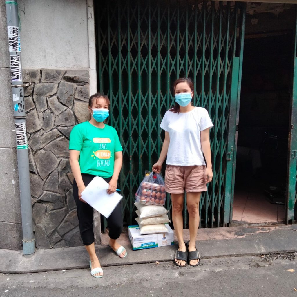 Với tinh thần “Không ai bị bỏ lại phía sau trong Covid-19”, cùng với sự đồng hành của các MTQ, CPFAV đã tiếp tục triển khai các gói hỗ trợ khẩn cấp tới 14 gia đình tại TP.HCM. Mỗi gia đình được nhận 1,500,000đ tiền mặt để mua nhu yếu phẩm.