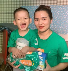 Các siêu nhân (trẻ bại não) phấn khởi đón nhận những phần quà từ cuộc thi “Nụ cười Siêu nhân” mùa 2