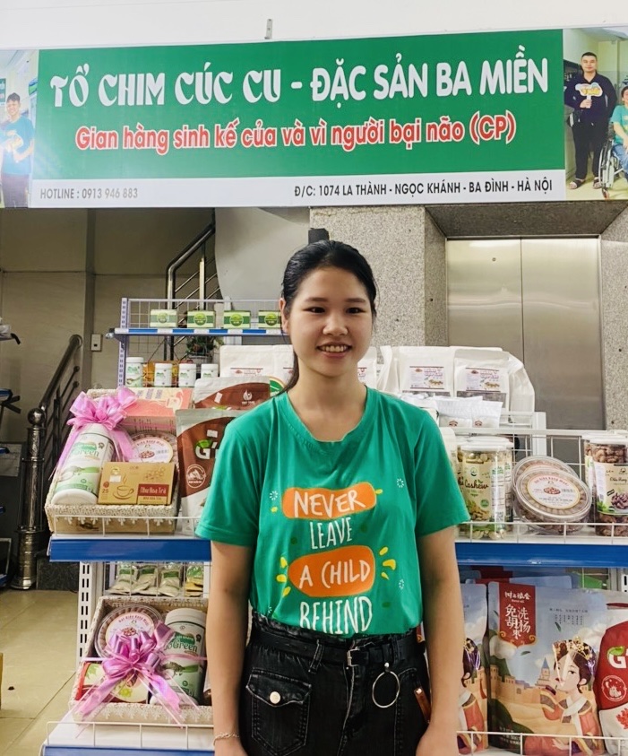 Là một người mẹ có con là trẻ CP, chị Bùi Thị Khuyên (Hà Nội) đến với Tổ Chim Cúc Cu bằng tất cả nhiệt huyết và mong muốn hỗ trợ phát triển gian hàng – nơi tạo ra sinh kế, thúc đẩy hòa nhập xã hội cho các bạn trẻ CP trưởng thành và phụ huynh. Hiện chị Khuyên đang quản lý chung các hoạt động của gian hàng Tổ Chim Cúc Cu.