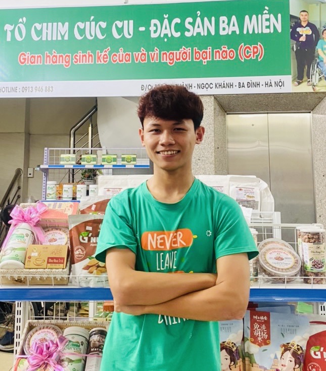 Đức Anh – chàng trai từ Quốc Oai, Hà Nội đến với Tổ Chim Cúc Cu vào đầu năm 2023. Sinh ra là một đứa trẻ bình thường, đến năm 6 tuổi, một trận ốm đã khiến Đức Anh từ một đứa trẻ bình thường trở thành trẻ bại não. Dù đôi tay co quắp, khó cử động nhưng Đức Anh vẫn cố gắng tập luyện có thể sử dụng tốt máy tính. Đức Anh được học về Thiết kế, hiện đang phụ trách mảng thiết kế hình ảnh tại gian hàng và cũng đang được Hội Gia đình trẻ bại não Việt Nam hỗ trợ chỗ ở tại Mái ấm.