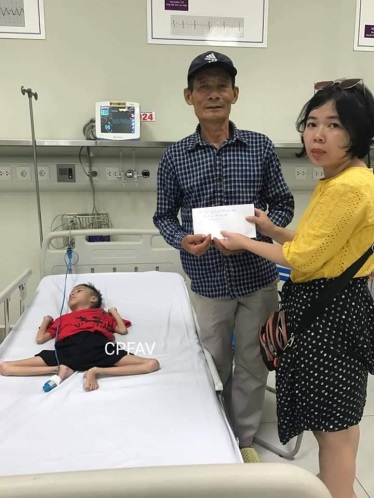 Tháng 9/2019, CPFAV đã kêu gọi các tấm lòng nhân ái hỗ trợ em. Tổng số tiền kêu gọi được là 34.550.000 VND đã được CPFAV chi trả viện phí, mua tủ lạnh, nhu yếu phẩm sinh hoạt, đồ dùng và trao tiền mặt cho 2 ông cháu.