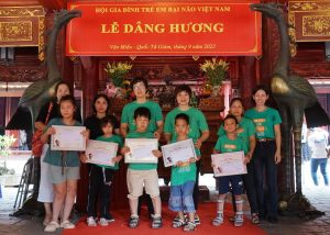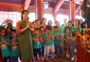 Các bạn siêu nhân làm lễ dâng hương và nhận học bổng “Siêu nhân đến trường”tại Văn Miếu Quốc Tử Giám,