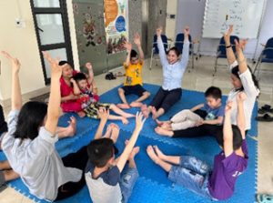 Các bạn nhỏ về Mái ấm tham gia vào mô hình “Lớp học siêu nhân” – Lớp học hòa nhập cuối tuần cho trẻ bại não được tổ chức vào mỗi sáng Chủ nhật tại văn phòng